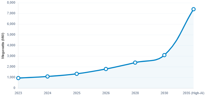 Australia’s deployable capacity stands at approximately 1,350 MW today, with consensus forecasts projecting 3,100 MW by 2030–2031 and 4.7 to 7.4 GW by 2035 under AI-driven scenarios, where data centers could consume up to 11 percent of national electricity.