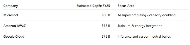 That statement reframes hyperscale competition. For the first time, infrastructure velocity how fast megawatts, land, and chips are energized has become the primary competitive metric.