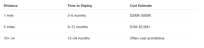 If the site is 3–10 miles from the nearest dark fiber loop, you don’t have to reject it, yet.
