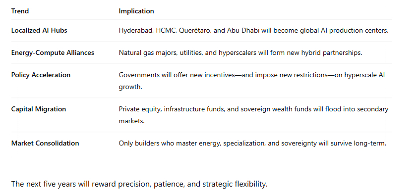 Those who embrace the new rules (energy alignment, sovereign strategies, hyperscale specialization) will shape the next industrial era.