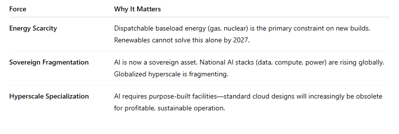 The New Growth Bottlenecks — How energy availability, sovereign policy, and hyperscale design constraints are rewriting the playbook.