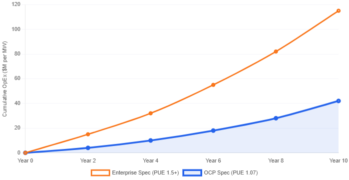 For independent operators building new capacity in the early 2010s, OCP created an adoption decision with a long compounding tail.