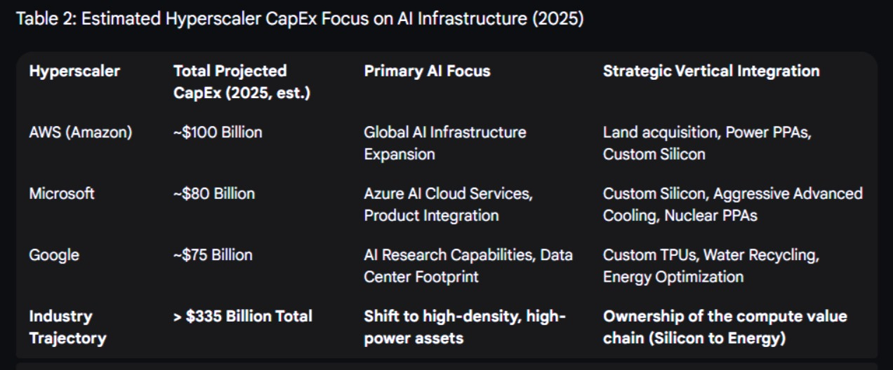 That’s why hyperscalers now negotiate directly with utilities, build on-site substations, and invest in renewables at unprecedented scale.